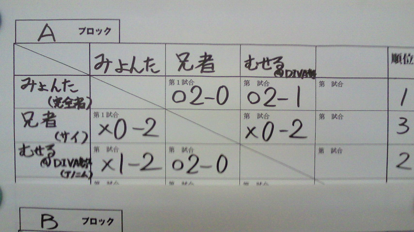 Aブロックは「みょんた(完全者)」「兄者(塞)」「むせる@DIVA勢(アノニムガード)」