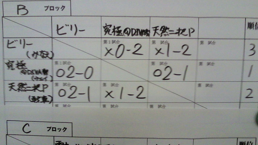続く「究極@DIVA勢(大魏)」でもミラクルを魅せて一本もぎとるも、流石にそう上手くいかず、その後の「ビリー」戦も勝ち抜いた「究極@DIVA勢」が勝ち上がる。